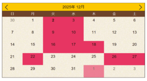 第2週:9日(火)・10日(水)は通常通り定休日になります。